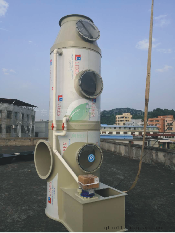设计的塔体内径和高度十分合理,塔内的净化装置由旋流气动装置、喷淋布水装置、脱水除雾装置组成,在设计计算、结构组成、加工工艺等方面都具有自身的特色,保证了烟气净化系统操作负荷和操作弹性大、传质效率高、防堵性能强、脱硫除尘效率高等突出的优点。备注:废气塔在循环水中添加各种药剂能处理对应净化中和各种有机、无机废气。