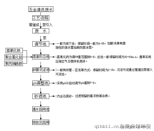 三、五金厂清洗废水处理设备工程工艺流程说明: