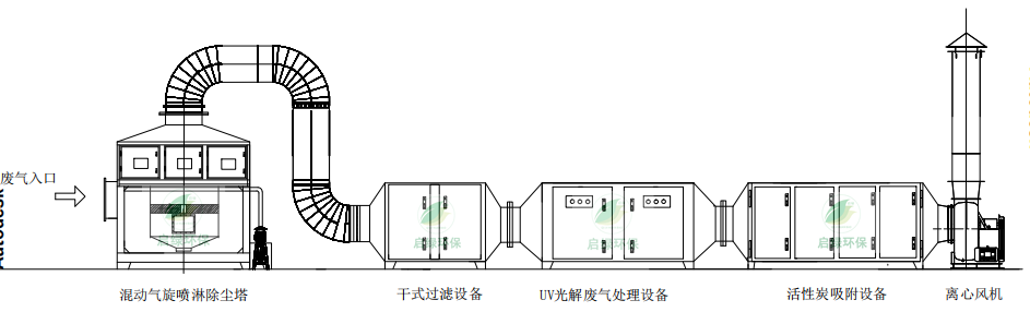 - 喷油漆废气处理一体化 气旋喷淋+UV光解+活性炭吸附法启绿环保
