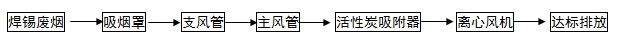 3)、通过活性炭吸附处理后的焊锡废气通过风管高空排放。