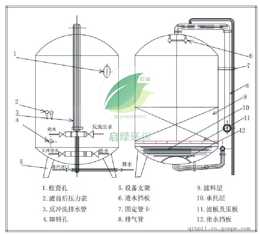 品牌:启绿环保 加工定制:是 型号:QL-HXT 游泳池类别:大型游泳池 进口直径:300 mm 出口直径:300 mm 功率:100 w 一、游泳池水质净化设备工作原理: