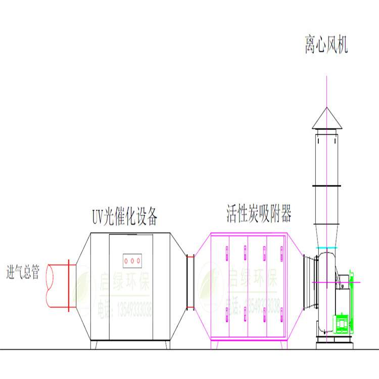 加工定制:是 品牌:启绿环保 型号:QLHB 处理风量:5000-80000 m3/h 启燃温度:25 ℃ 适用领域:脱臭废气处理 一、UV光解废气净化设备产品简介: